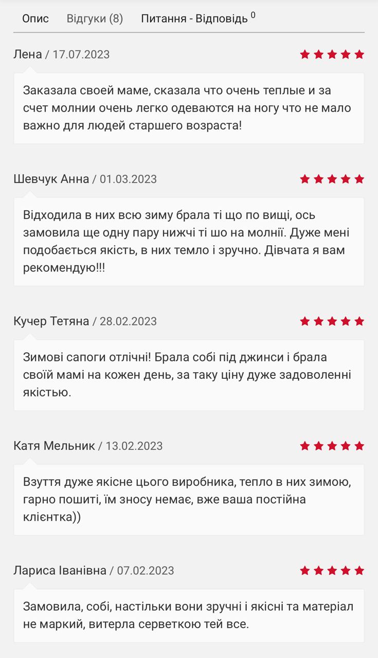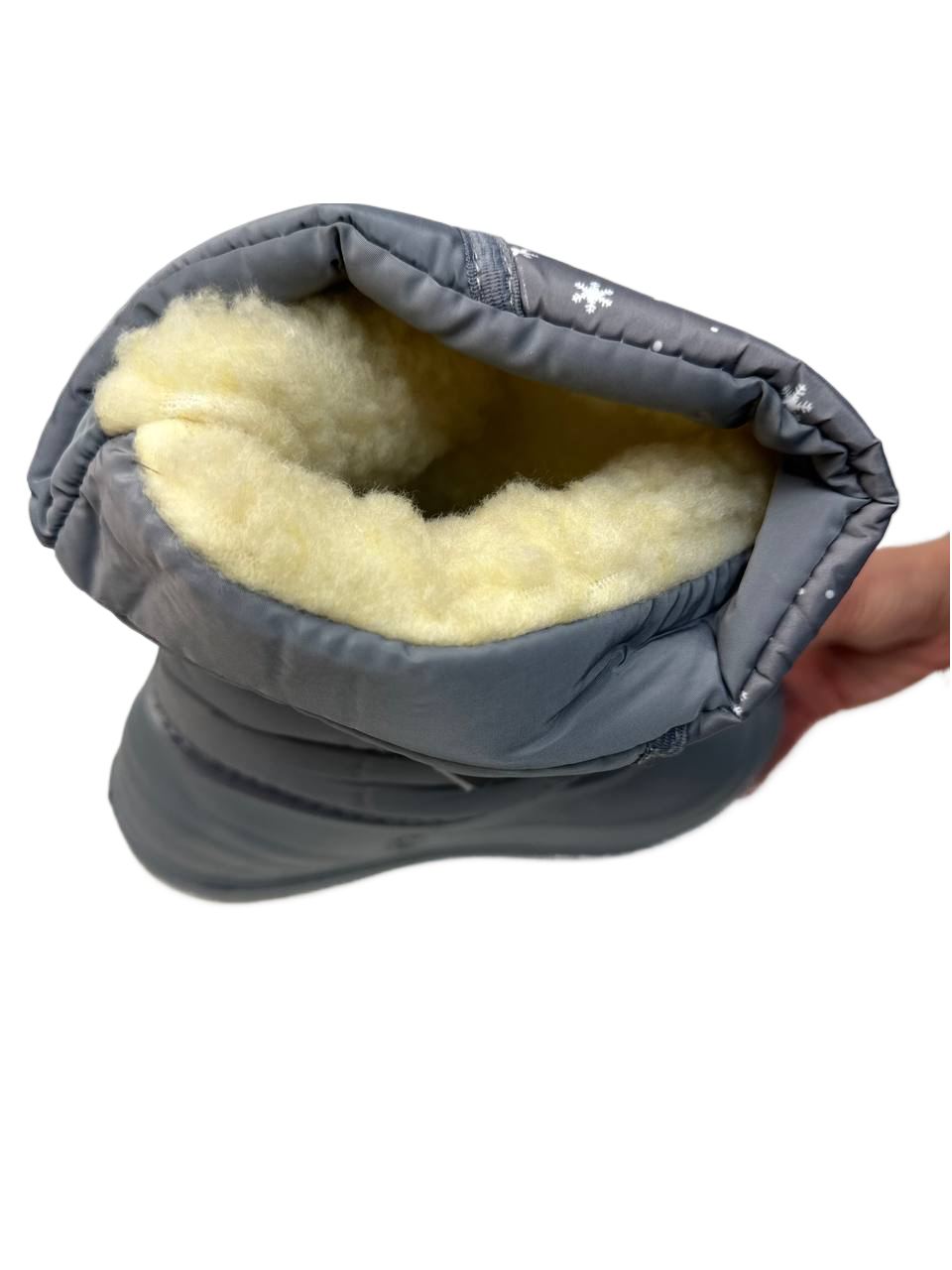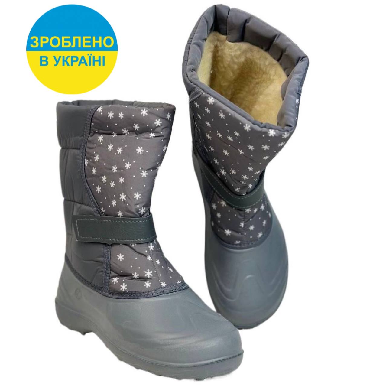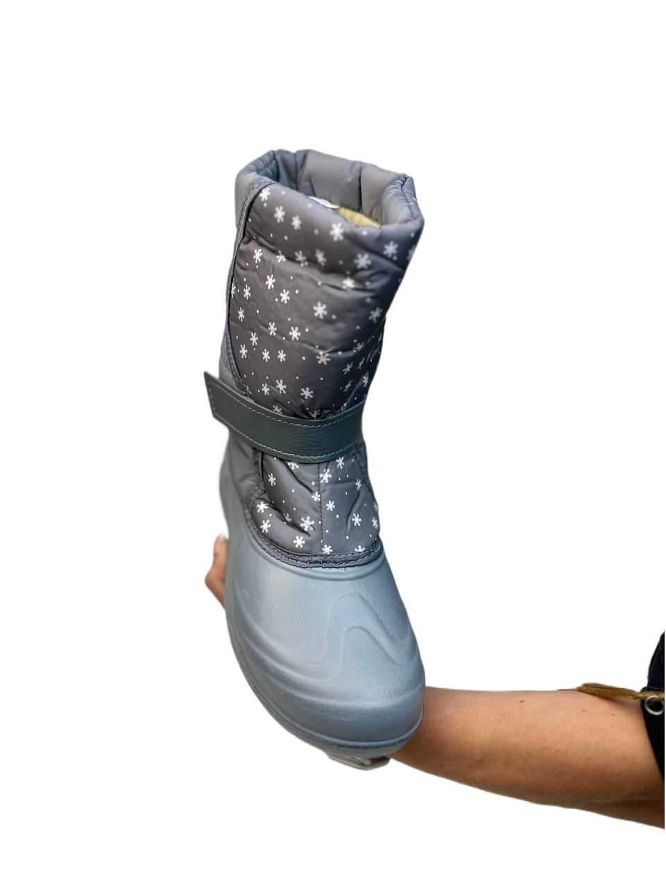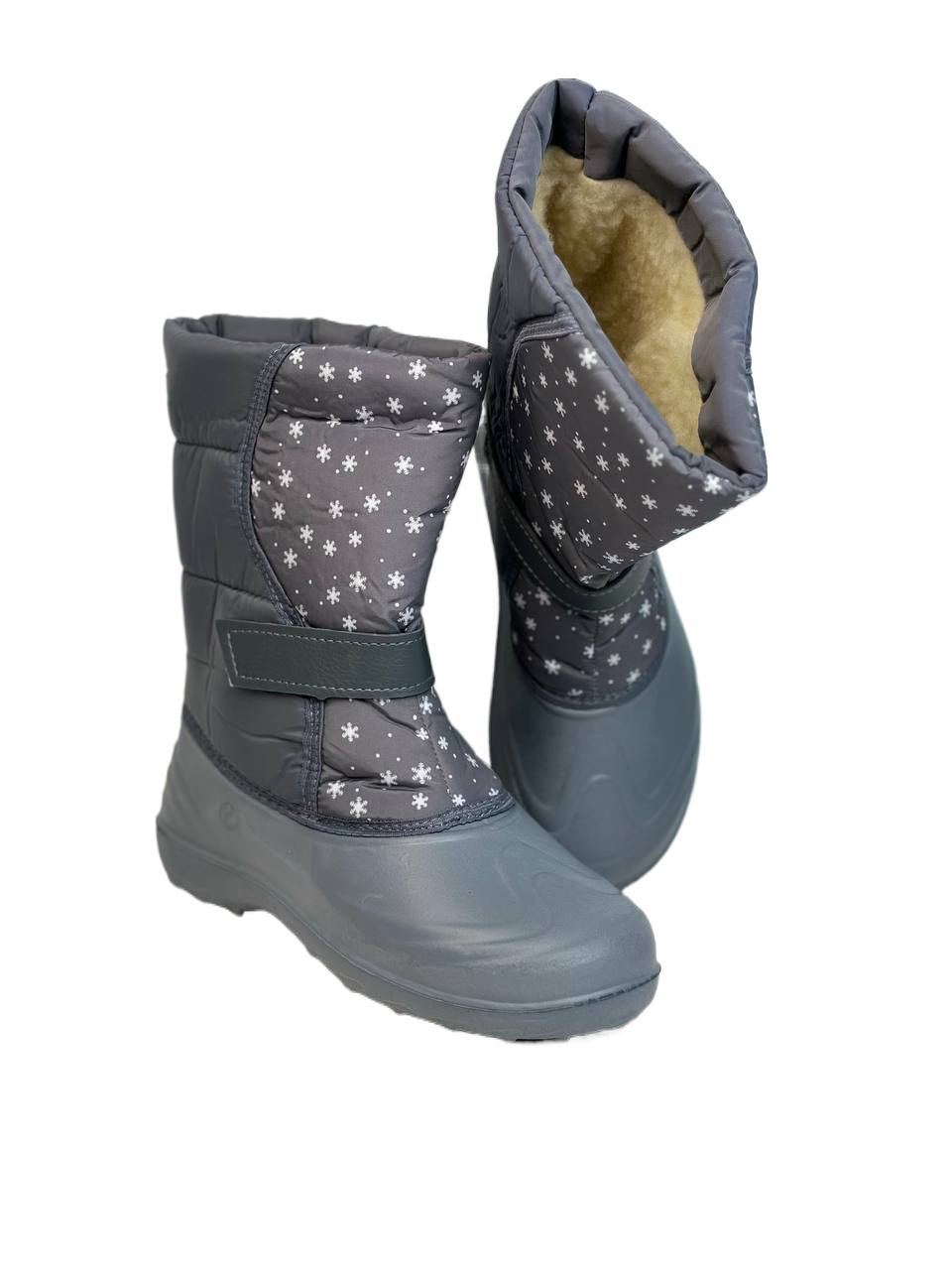 Універсальний варіант – від холоду і сльоти Похмура осінь … Мокра весна … Сніжна зима … У черевиках занадто сиро, а в гумових чоботах ноги просто мерзнуть. Вам знову не в чому ходити? Не турбуйтеся: якраз для такої примхливої погоди і придумані демісезонні жіночі комбіновані чоботи – сноубутси! Чому їх варто полюбити? · По-перше, верх чобота з щільного текстилю – не тільки оберігає ноги від холоду, але і відмінно виглядає в поєднанні з зимовим одягом. · По-друге, нижня частина, яка закриває стопу, зроблена литним методом- з дуже легкого, пружного і водонепроникного сучасного матеріалу ЕВА – і щільно пришита до верхньої частини чобота. · А за додаткову м’якість і тепло відповідає підкладка зі штучного хутра. · Жіночі сноубутси – взуття для тих, хто любить тримати ноги в теплі і сухості! Переваги: · Сноубутси жіночі на штучному хутрі – це: · Зручно – спеціальний шнурок дозволяє регулювати повноту і щільність прилягання халяви · Комфортно – дуже теплі, приємні, легкі на нозі · Стильно – оригінальний дизайн і ошатні малюнки, підходять до пуховику ЕВА – чудовий матеріал для різних погодних умов, тому що володіє наступними характеристиками: · повністю вологонепроникний · морозостійкий · зберігає тепло · надзвичайна легкість – в 4 рази легше, ніж ПВХ рефлена підошва допоможе почувати себе упевнено у будь якиу ожеледь · еластичність, пружність, гнучкість – в будь-яку погоду · прекрасна амортизація · висока зносостійкість · гігієнічність – стійкість до дії бактерій і грибків
