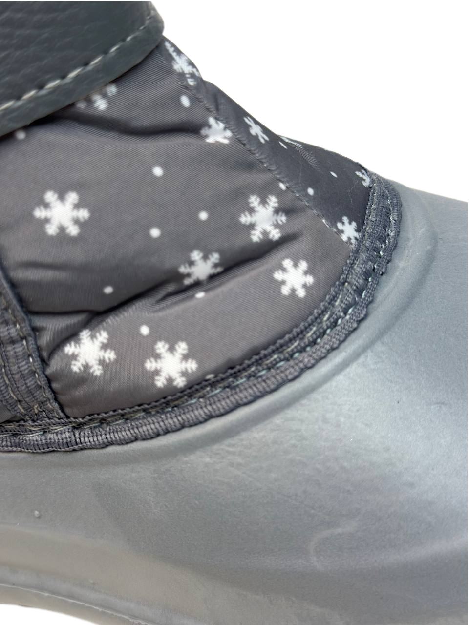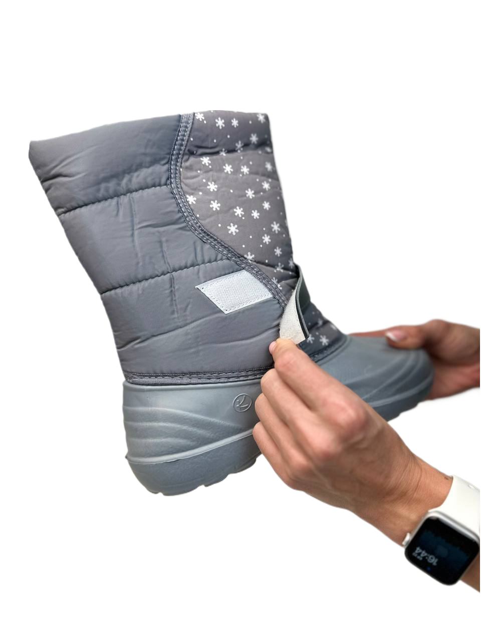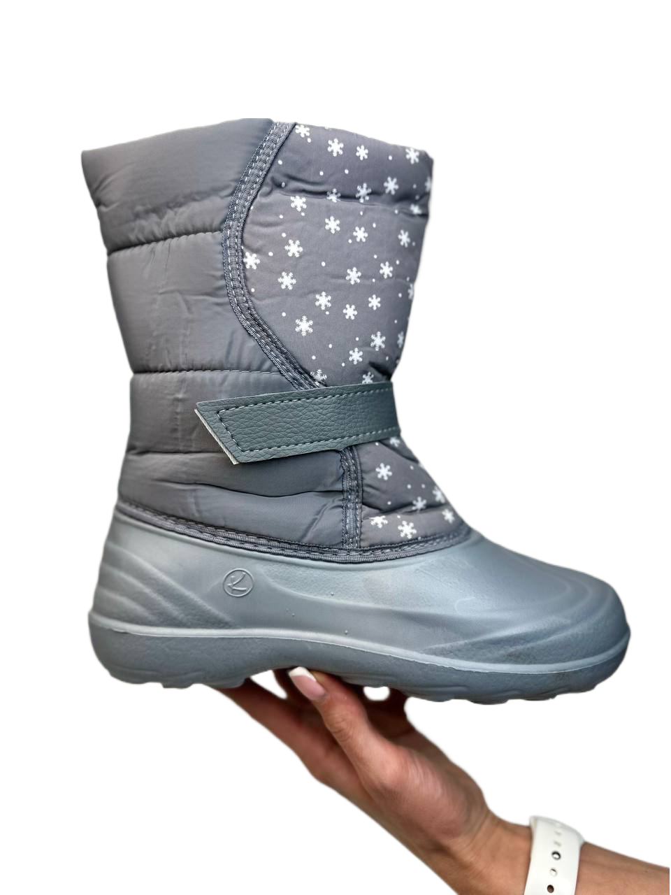 Універсальний варіант – від холоду і сльоти Похмура осінь … Мокра весна … Сніжна зима … У черевиках занадто сиро, а в гумових чоботах ноги просто мерзнуть. Вам знову не в чому ходити? Не турбуйтеся: якраз для такої примхливої погоди і придумані демісезонні жіночі комбіновані чоботи – сноубутси! Чому їх варто полюбити? · По-перше, верх чобота з щільного текстилю – не тільки оберігає ноги від холоду, але і відмінно виглядає в поєднанні з зимовим одягом. · По-друге, нижня частина, яка закриває стопу, зроблена литним методом- з дуже легкого, пружного і водонепроникного сучасного матеріалу ЕВА – і щільно пришита до верхньої частини чобота. · А за додаткову м’якість і тепло відповідає підкладка зі штучного хутра. · Жіночі сноубутси – взуття для тих, хто любить тримати ноги в теплі і сухості! Переваги: · Сноубутси жіночі на штучному хутрі – це: · Зручно – спеціальний шнурок дозволяє регулювати повноту і щільність прилягання халяви · Комфортно – дуже теплі, приємні, легкі на нозі · Стильно – оригінальний дизайн і ошатні малюнки, підходять до пуховику ЕВА – чудовий матеріал для різних погодних умов, тому що володіє наступними характеристиками: · повністю вологонепроникний · морозостійкий · зберігає тепло · надзвичайна легкість – в 4 рази легше, ніж ПВХ рефлена підошва допоможе почувати себе упевнено у будь якиу ожеледь · еластичність, пружність, гнучкість – в будь-яку погоду · прекрасна амортизація · висока зносостійкість · гігієнічність – стійкість до дії бактерій і грибків